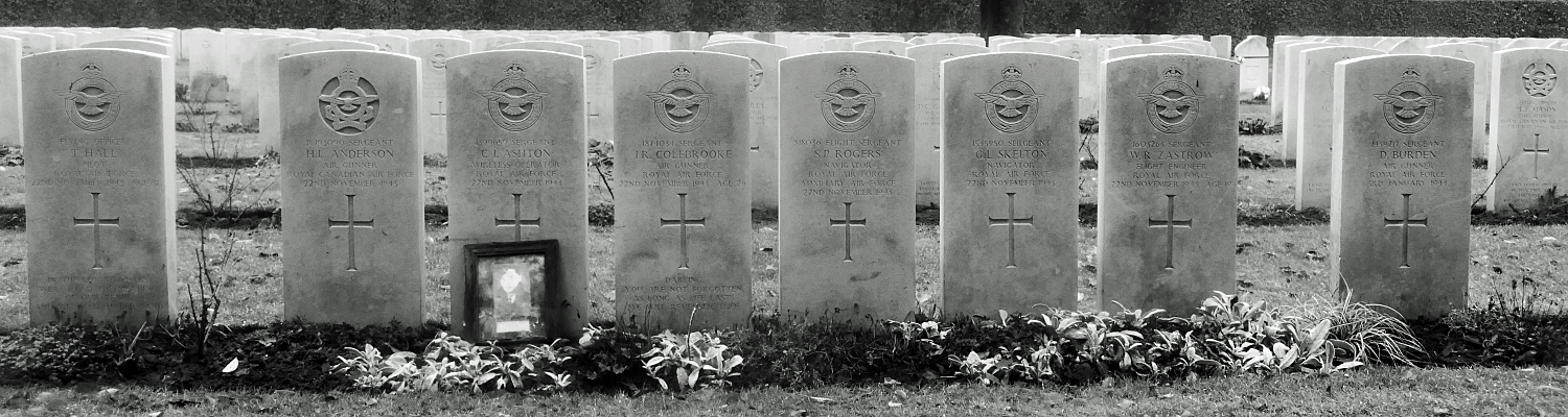 (Titelfoto: Grabsteine von Besatzungsmitgliedern britischer Bomber