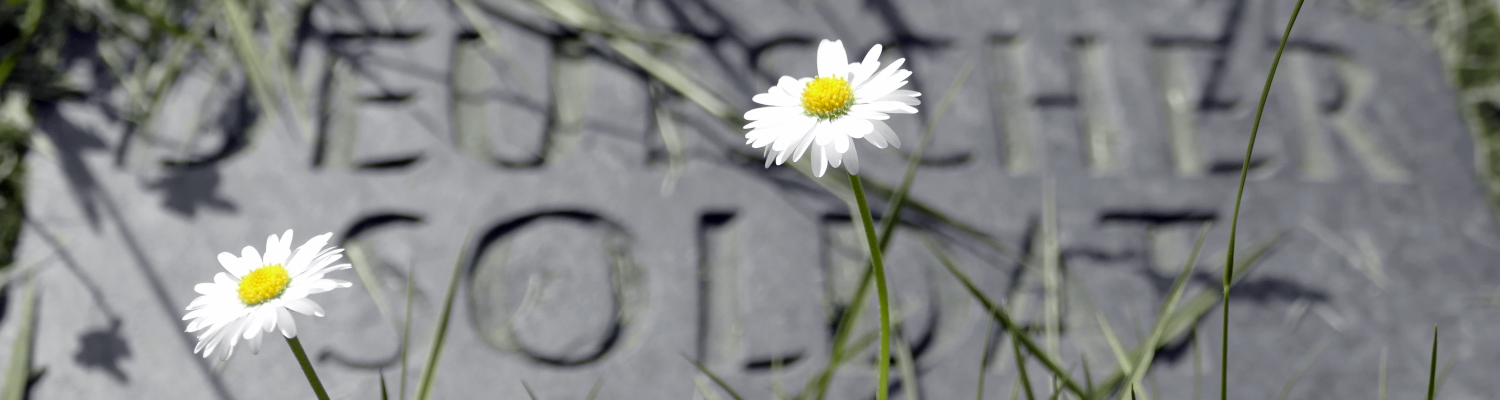 (Titelfoto: Gänseblümchen über einem Grabstein